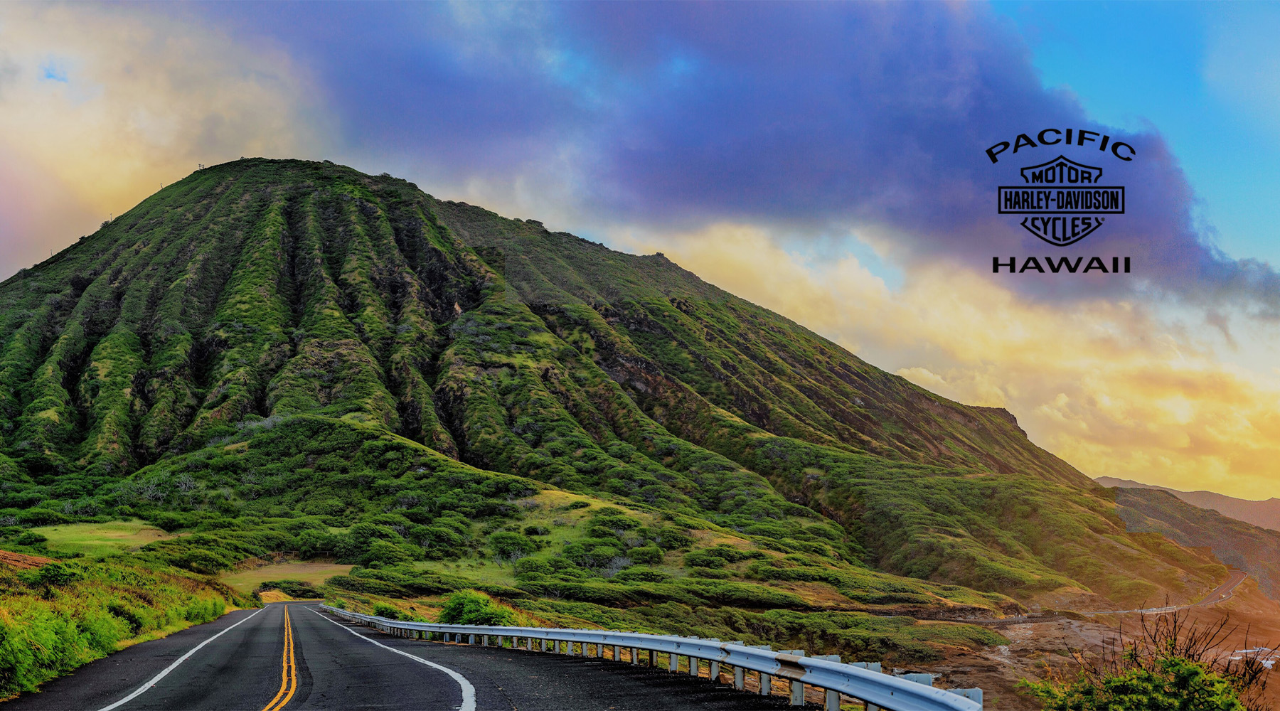 하와이의 푸른 바다와 화산 풍경을 배경으로 대형 오토바이로 달리며 자유롭게 즐기고 싶은게 남자들이 로망~~